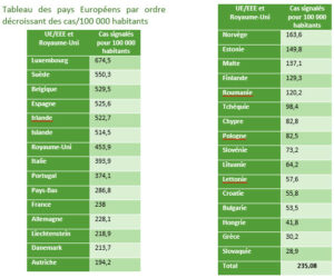Les cinq pays Européen où l’on est le plus à risque de contamination sont :